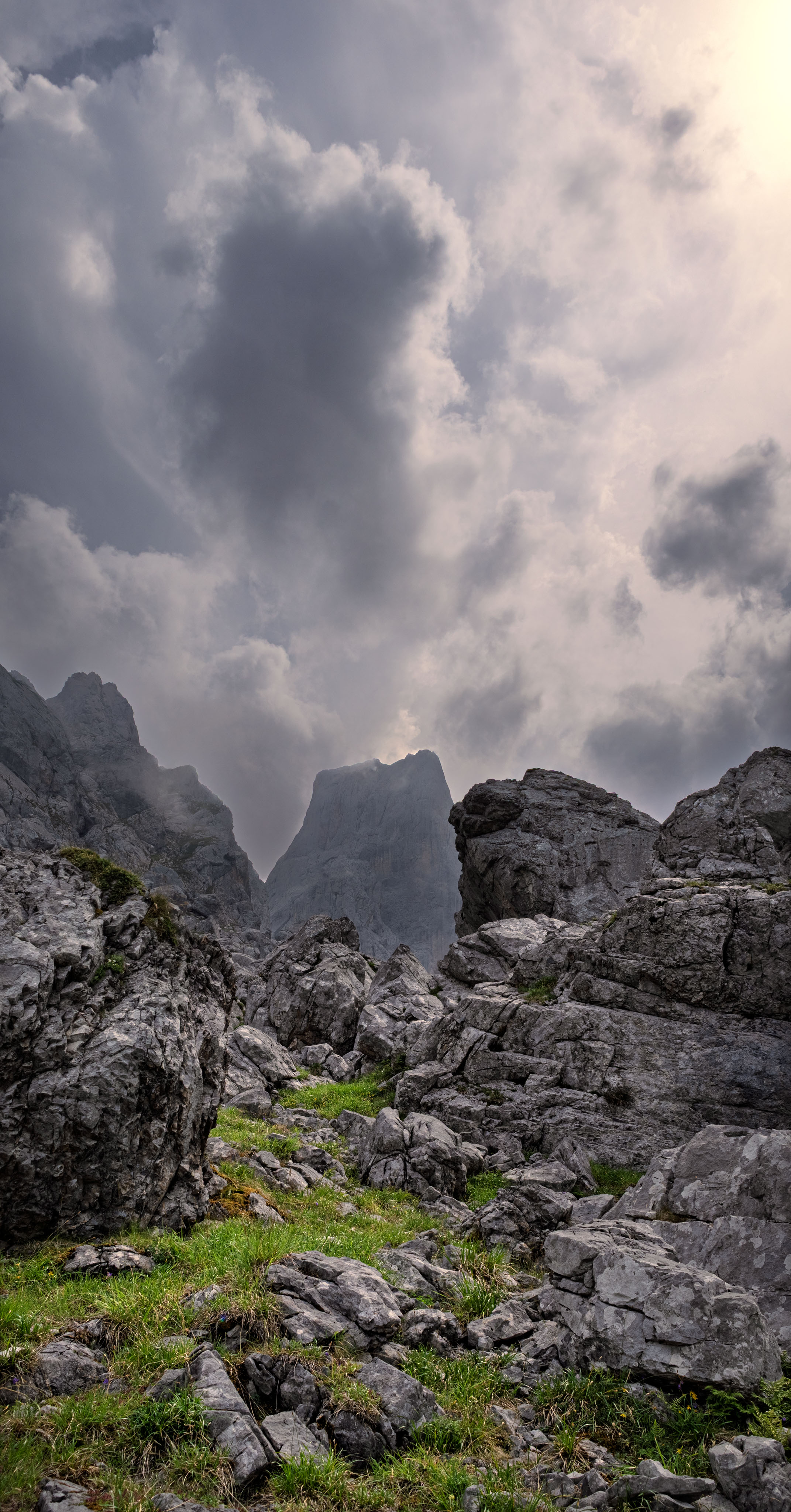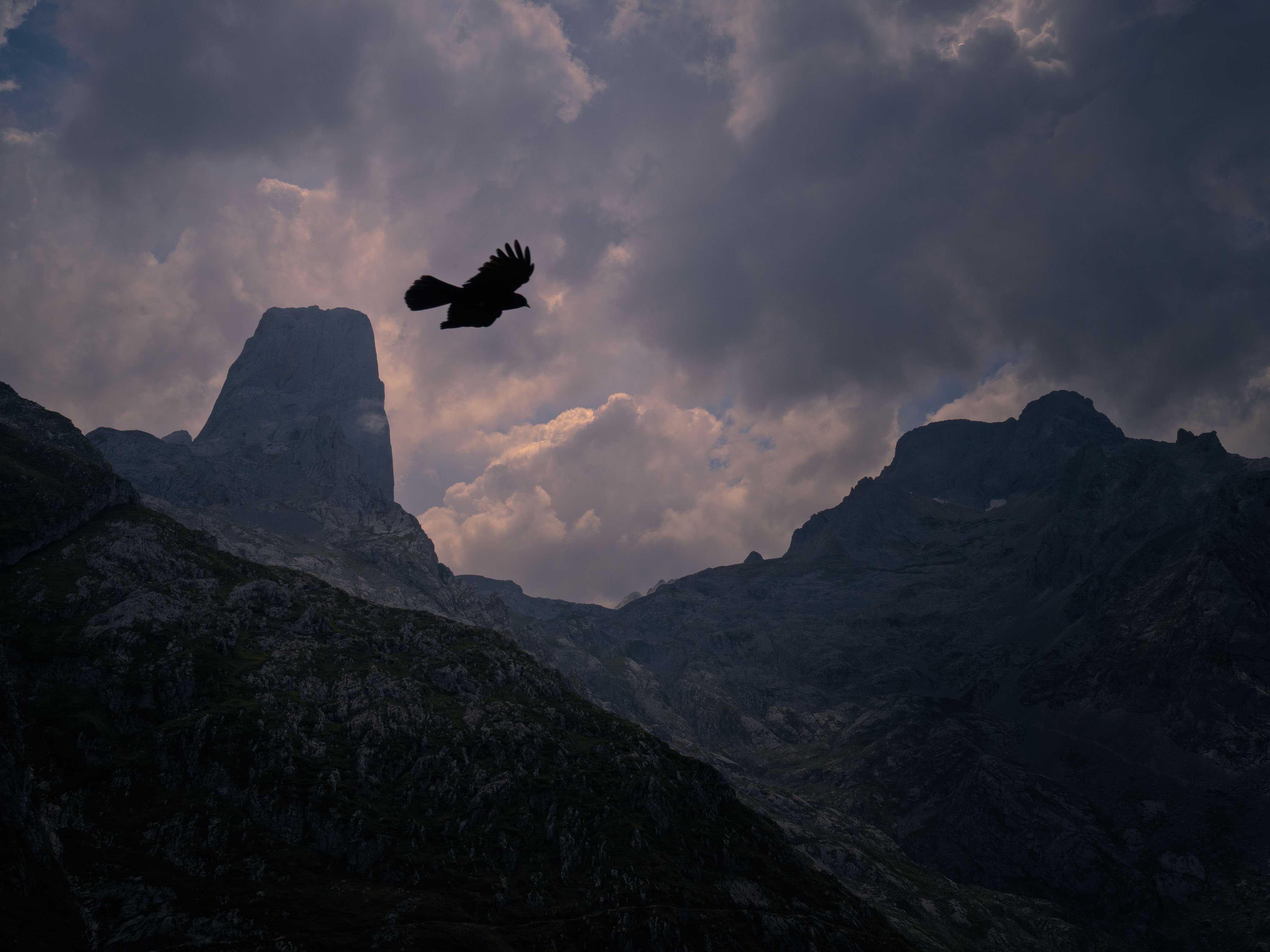 Vuelvo a mirar la maciza torre de piedra caliza. Se alza imponente, como un extraño acorzado varado en una marea de nubes y custodiado por un puñado de pájaros fieros que sobrevuelan nuestras cabezas entre graznidos de protesta. A la montaña, intuyo, le da igual cómo la llamemos. Debe de ser difícil perturbar a un gigante de piedra.