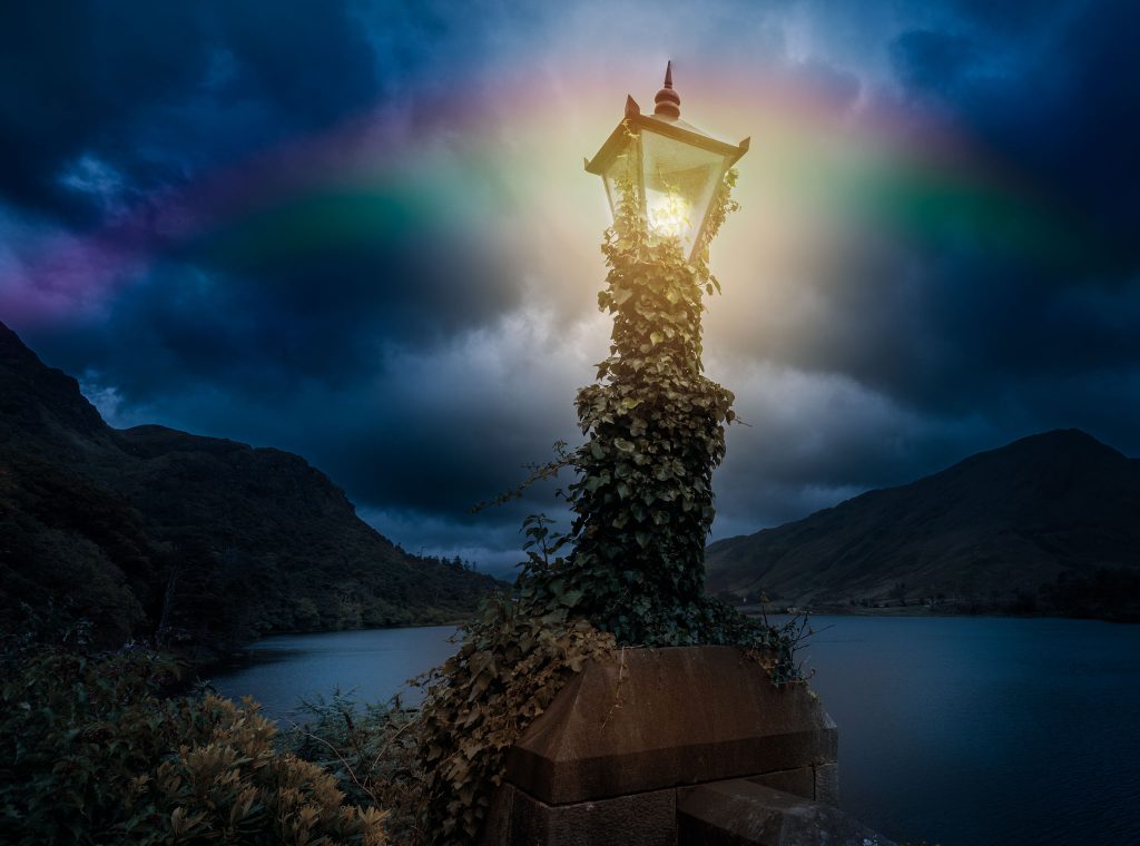 Impresionantes cielos, sí. La segunda foto es también sorprendente. Esa mezcla de la luz (la farola parece encendida, ¿no?), el espectro del arcoiris y el fondo oscuro con los nubarrones amenazantes.
